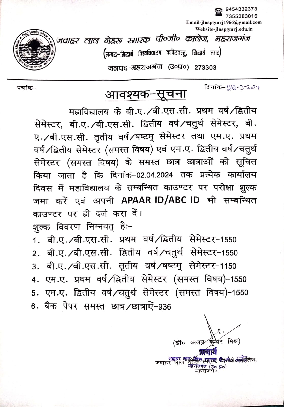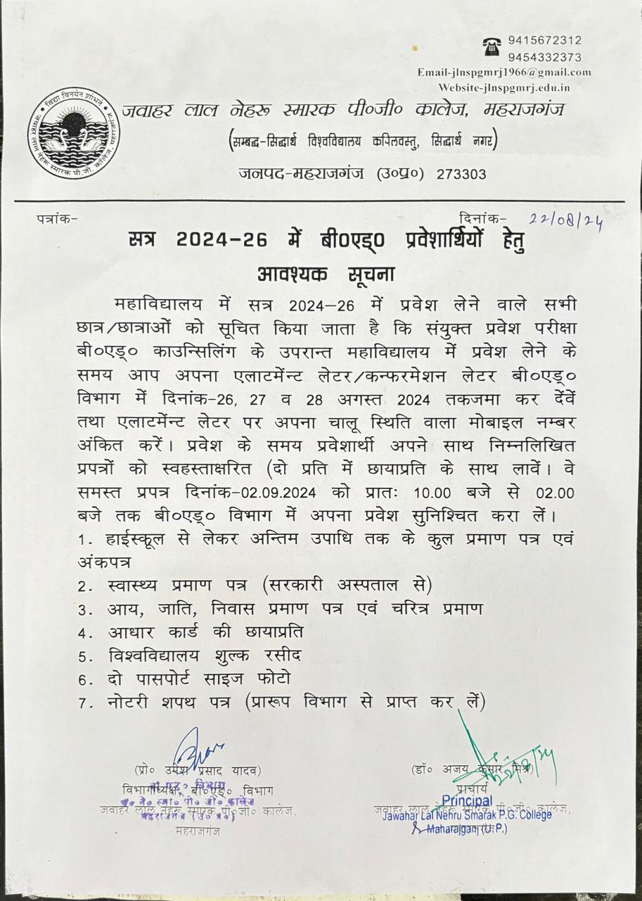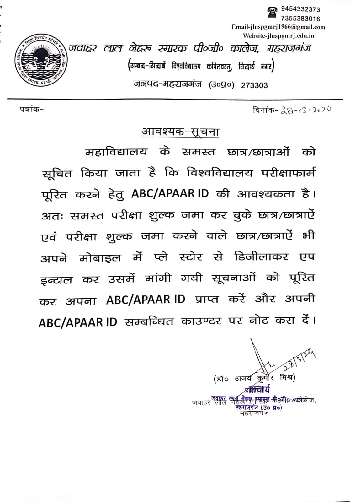 Copyright © 2026 - All Rights Reserved - Jawahar Lal Nehru Smarak P.G. College Maharajganj (U.P.)