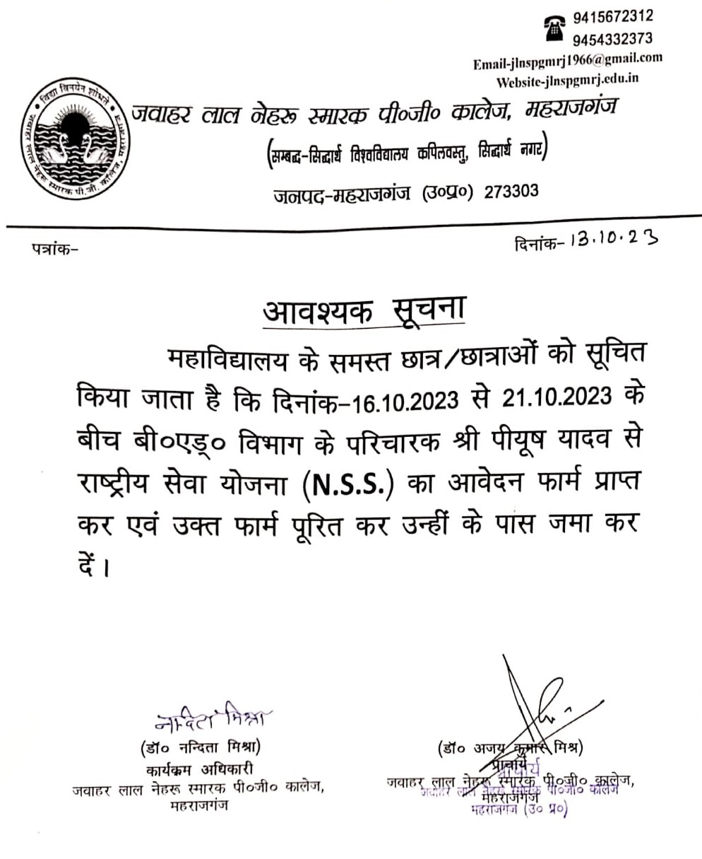 Copyright © 2026 - All Rights Reserved - Jawahar Lal Nehru Smarak P.G. College Maharajganj (U.P.)
