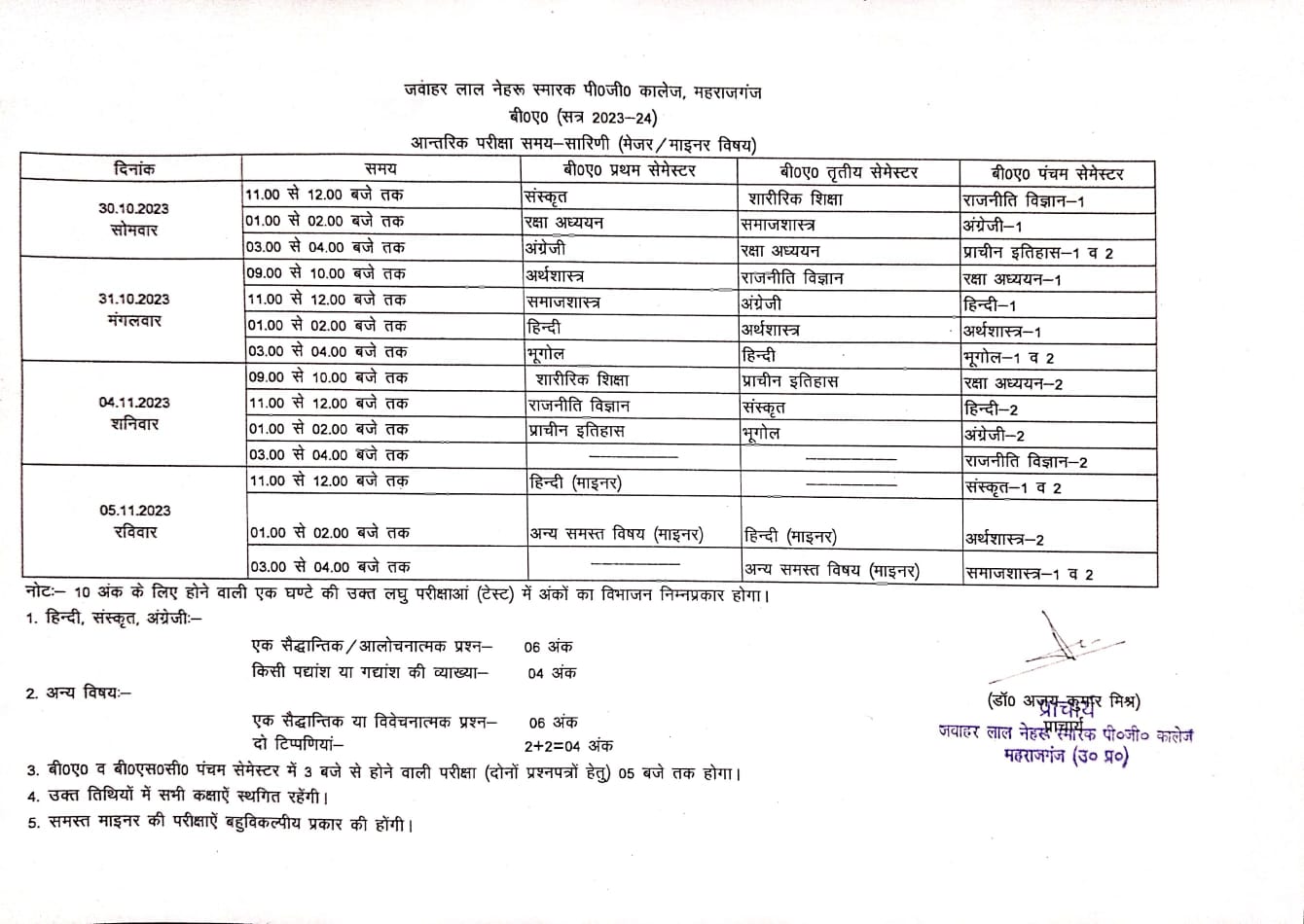 B.A ENTERNAL EXAM TIME TABLE 2023-24