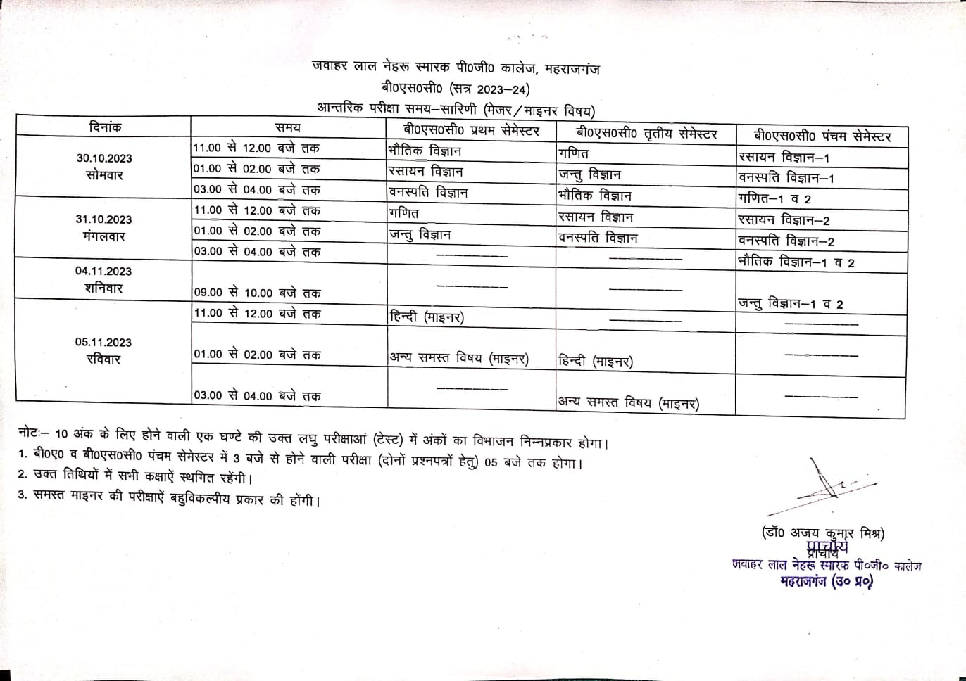 B.SC. ENTERNAL EXAM TIME TABLE 2023-24